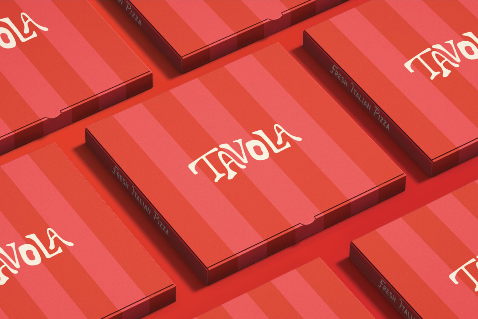 Takeaway packaging is bold and colourful, providing differentiation and visual recognition as people walk around the town. For home delivery, customers receive ‘a little piece of Tavola’ – taking the experience beyond the four walls of the restaurant.