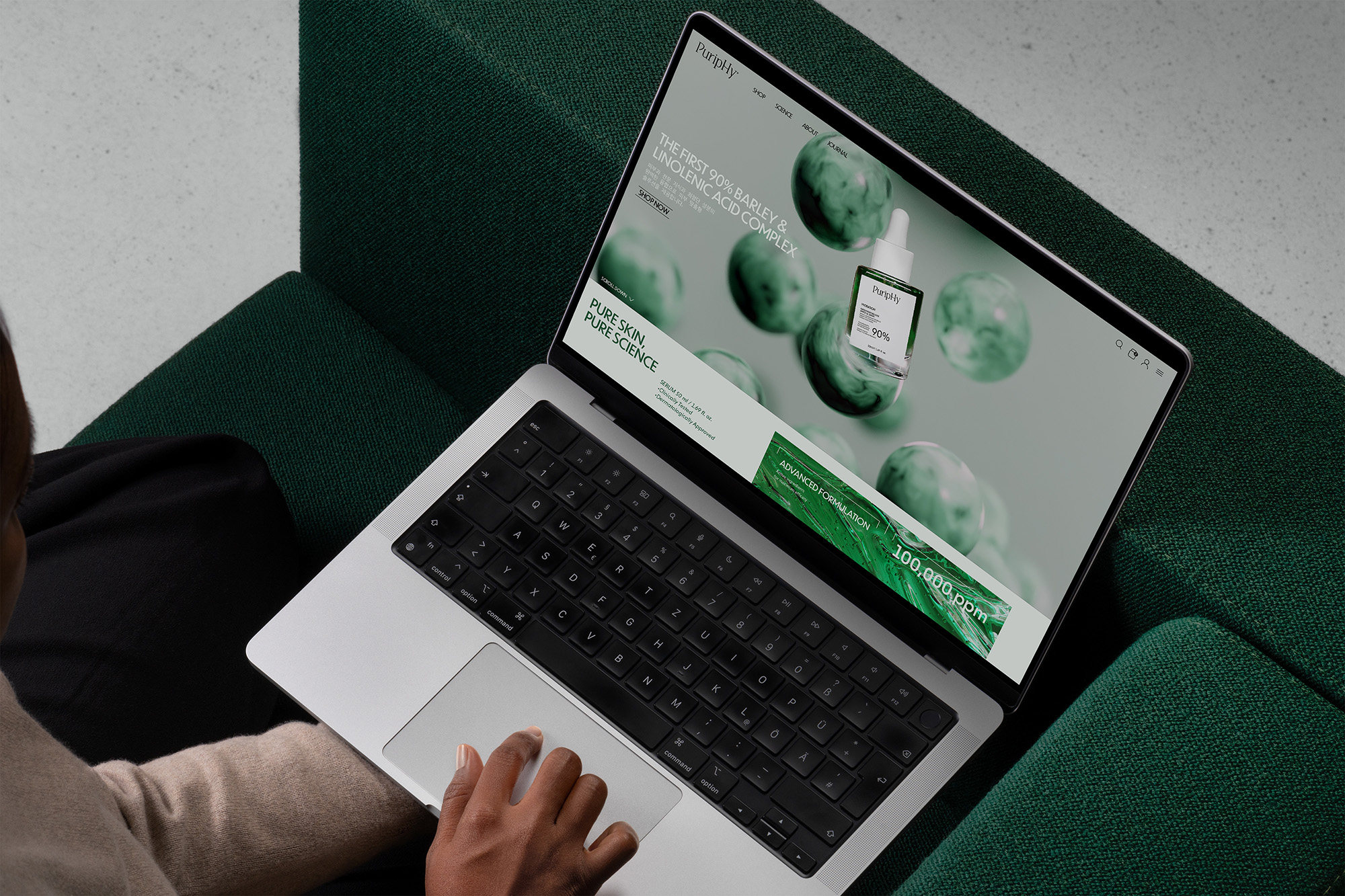 Create a visual identity that translates the brand’s central duality: scientific precision and natural purity. The solution needed to differentiate Puriphy in the cosmeceutical market, while maintaining a sophisticated and innovative positioning.